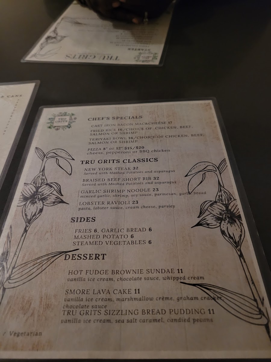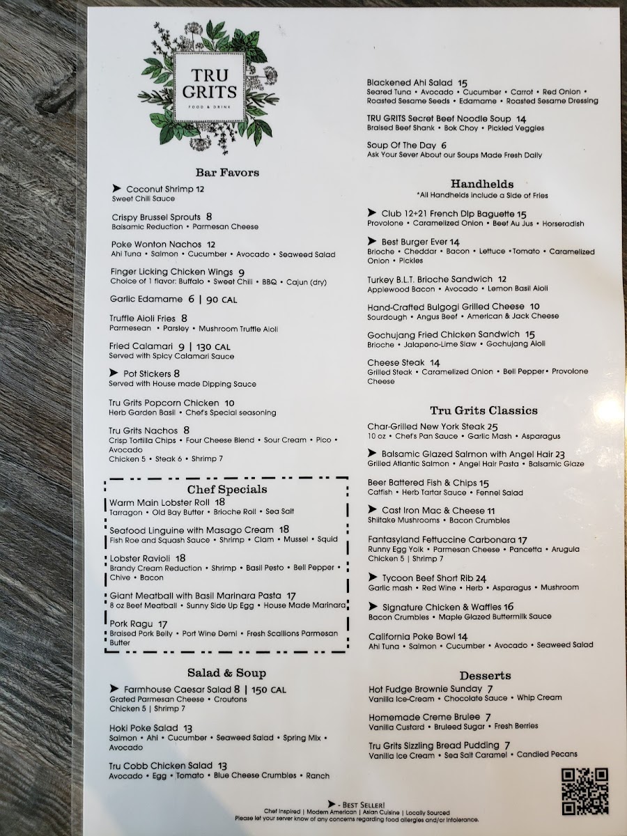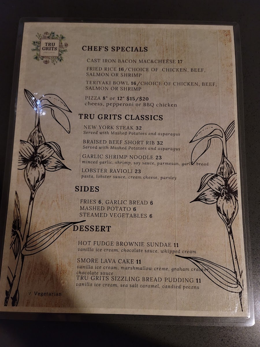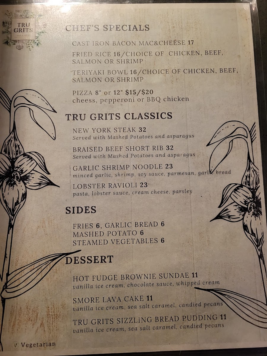 Tru Grits American Fusion Restaurant Menu (2025 Update)