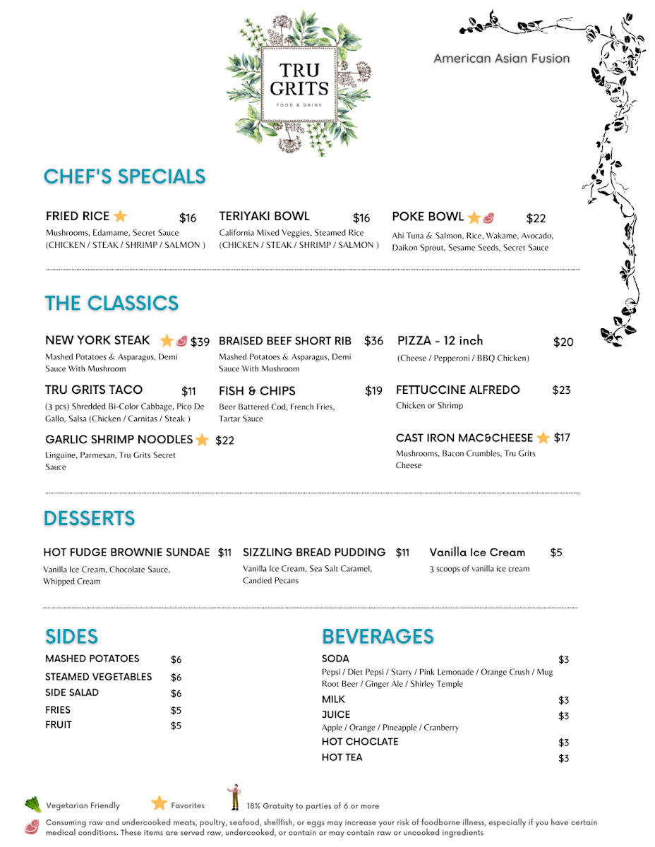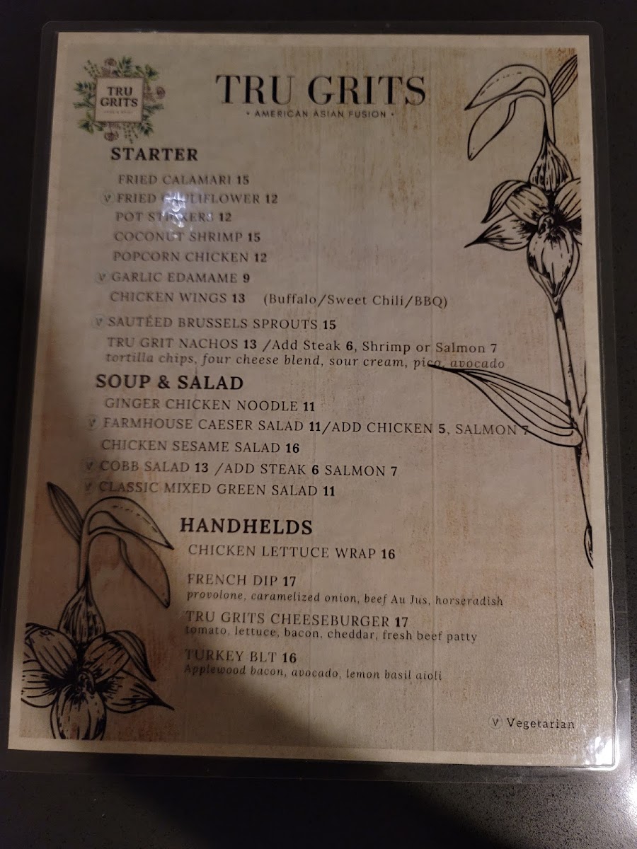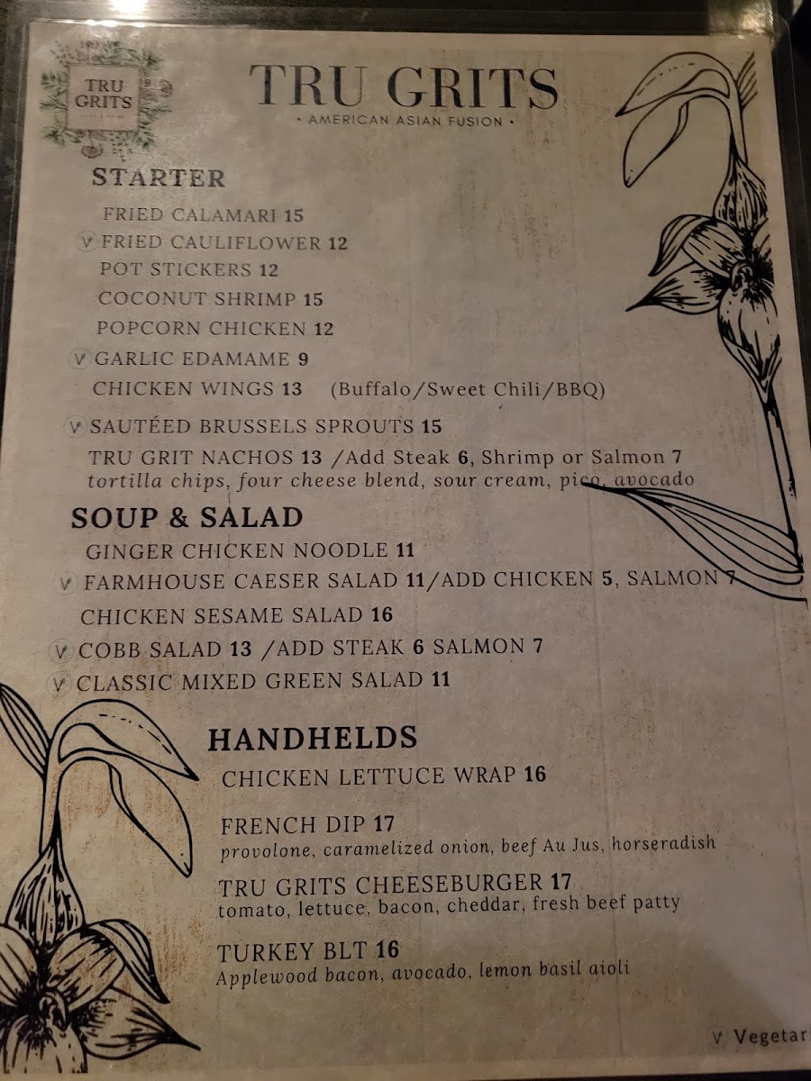 Tru Grits American Fusion Restaurant Menu (2025 Update)